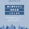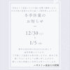 冬季休暇のお知らせを致します。 お手間を取らせますが、ご確認の程、宜しくお願い致します。 ※毎週水曜日と年末年始はお店がお休みとなっております※ ...